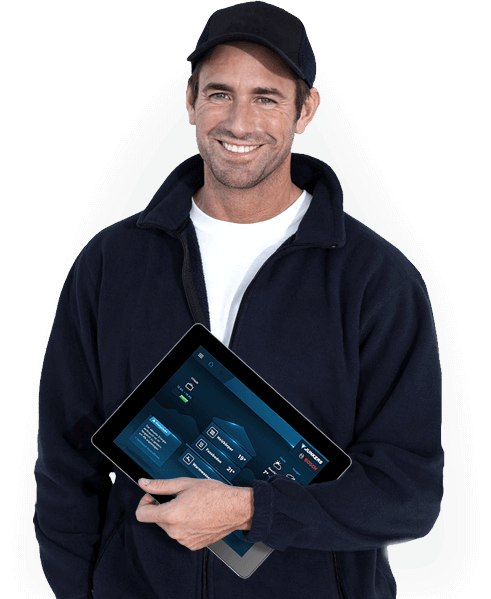 Auch der Einbau der neuen Heizung ist schnell erledigt, denn Junkers Bosch bietet dem Heizungsbauer digitale Hilfestellungen und leitet ihn durch den gesamten Installationsprozess. Wartungsarbeiten verlaufen dank der portalgestützten Anwendung Bosch HomeCom schnell und für Bewohner und Installateur transparent. Der Hausbesitzer bekommt in der Bosch HomeCom-App den Hinweis, dass eine Störung vorliegt. Der Fachpartner bekommt gleichzeitig eine Meldung über die Profianwendung Bosch HomeCom Pro. Per automatischer Online-Ferndiagnose erkennt er Störungen sofort, bekommt eine Fehlerwahrscheinlichkeit angezeigt und kann mit dem passenden Ersatzteil zu seinem Kunden fahren und schnell helfen.