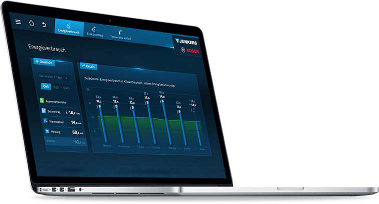 Bosch HomeCom bietet dem Wohnungsbesitzer nicht nur smarte Funktionen zur mobilen Steuerung der Heizung und individuellen Heizungs- und Warmwasserkomfort für hohe Ansprüche, es unterstützt auch bei der Optimierung des Energieverbrauchs. Analysen und Auswertungen zeigen neben Verbrauchswerten auch die genauen Temperaturverläufe der vergangenen Monate. Die technischen Voraussetzungen zur Nutzung von Bosch HomeCom sind niedrig: Das Heizgerät von Junkers Bosch muss mit der entsprechenden Reglerserie ausgerüstet und über ein IP-Modul mit dem Internet verbunden sein. Die Bedienung erfolgt dann entweder über die App oder einen Internetbrowser. Ob die eingebaute Heizung von Junkers Bosch internetfähig ist, lässt sich einfach auf www.junkers-homecom.de/connect-check prüfen.
